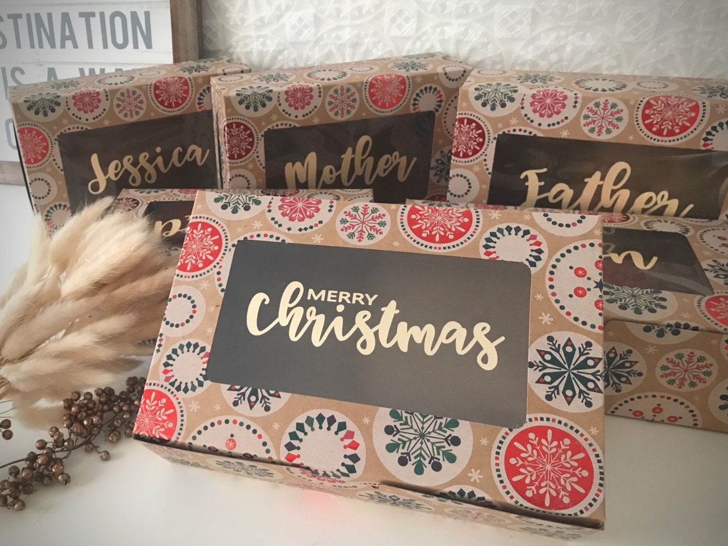 Personalized kraft gift box for Christmas