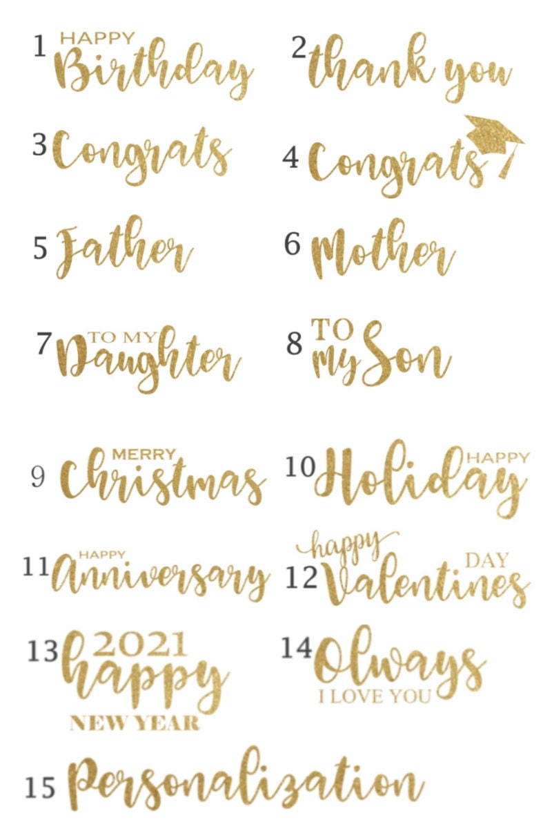 8.7" x 6" x 2.8" (22cm x 15cm x 7cm) Kraft paper window box with a beautiful glitter gold wording of your choice.